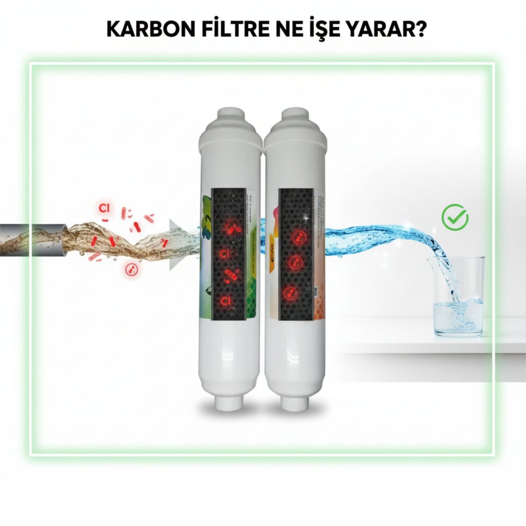 Karbon filtre, suda bulunan kloru, kötü koku ve tadı gideren en etkili filtrelerden biridir.