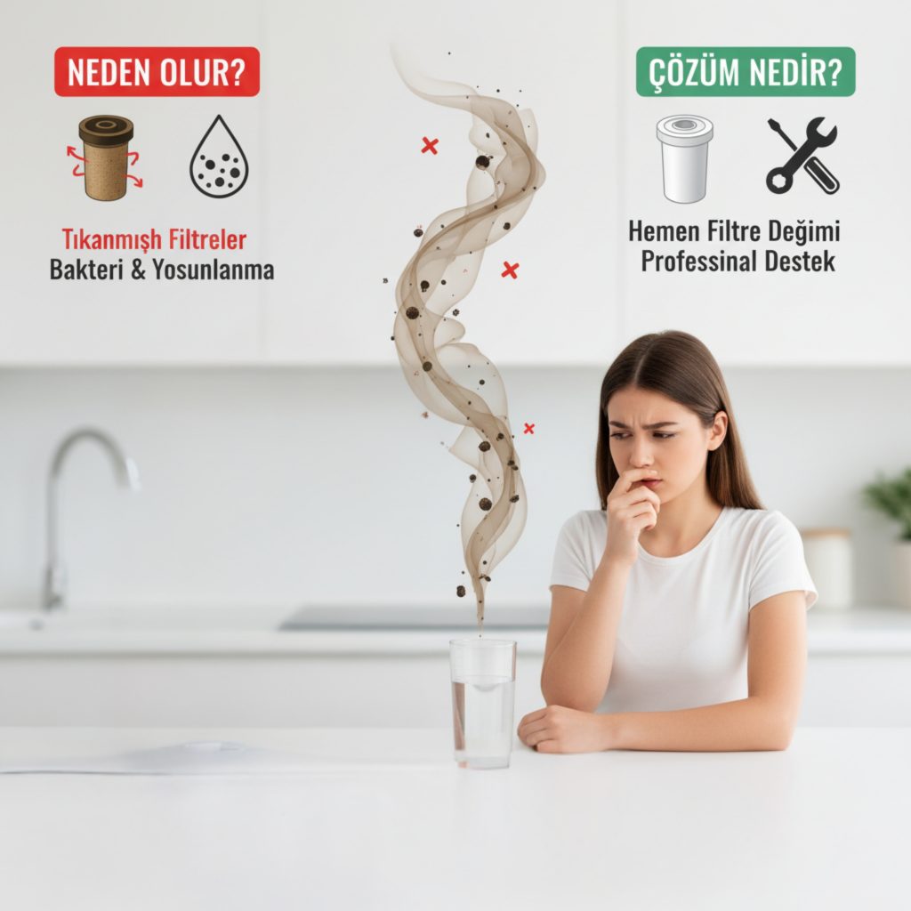 Kötü koku genellikle karbon filtre veya membran filtresinin aşırı kirlenmesinden kaynaklanır.