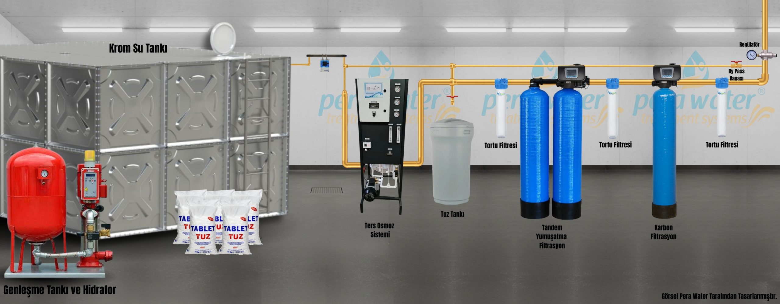 “Pemax Water Solutions Delta Ters Ozmoz Bina ve Fabrika Karbon Filtrasyon Ve Çift (tandem)Kireç önleyici Yumuşatma Sistemli Merkezi Endüstriyel Arıtma Cihazı”