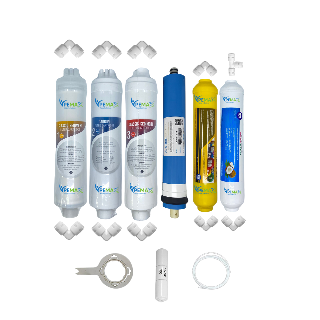 Pemax Water Solutions Kapalı Kasa Su Arıtma Cihazlarına uygun Eco 6li Vontron mebran Mineral+tatlandırıcı set