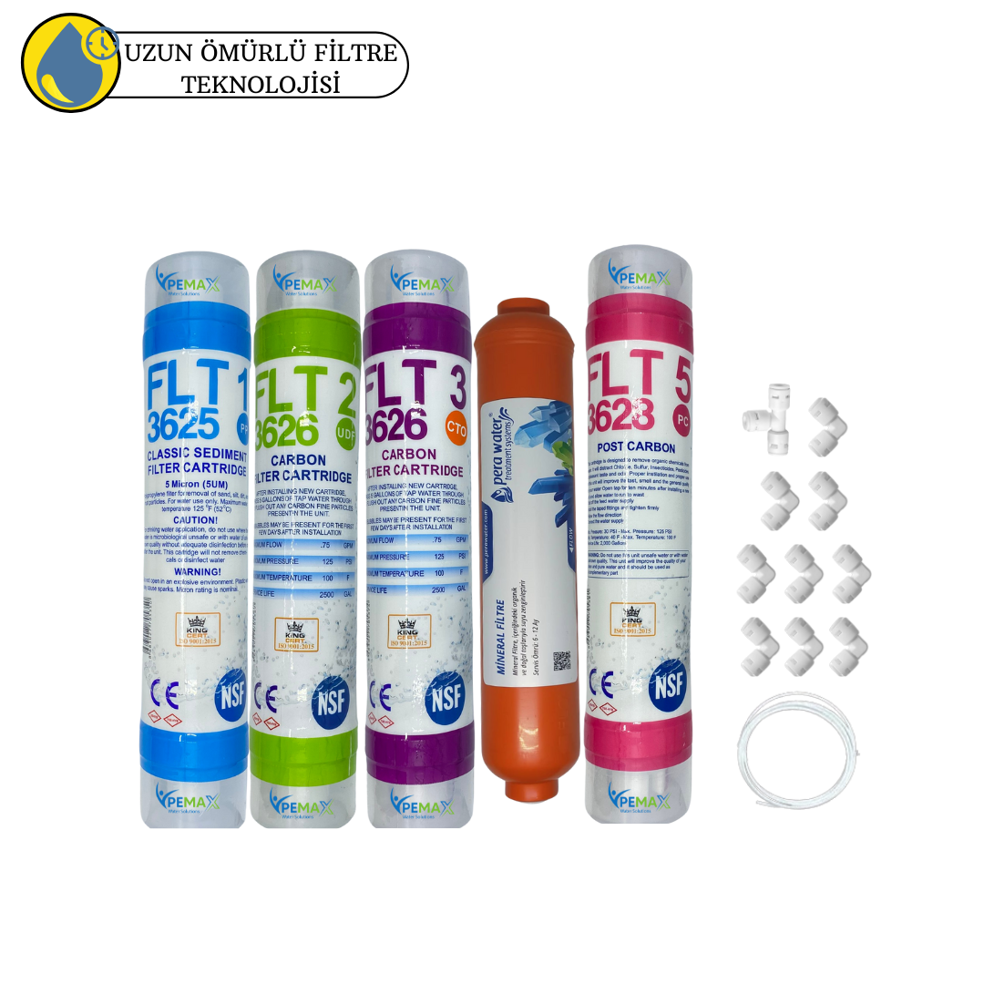 Pemax Water Solutions Kapalı Kasa Su Arıtma Cihazlarına uygun Sertifikalı 5 li mebransız 12 inç tatlandırıcılı + mineral set ekipmanları