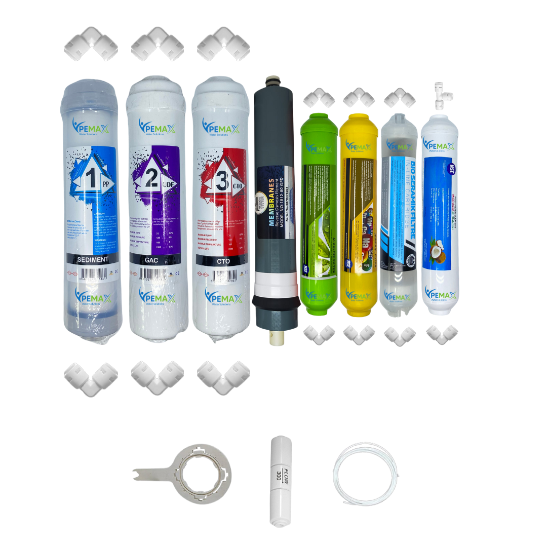 Pemax Water Solutions Kapalı Kasa Su Arıtma Cihazlarına uygun STD 8 li Platinium mebranlı Alkali+mineral+detox+tatlandırıcılı set ve ekipmanları