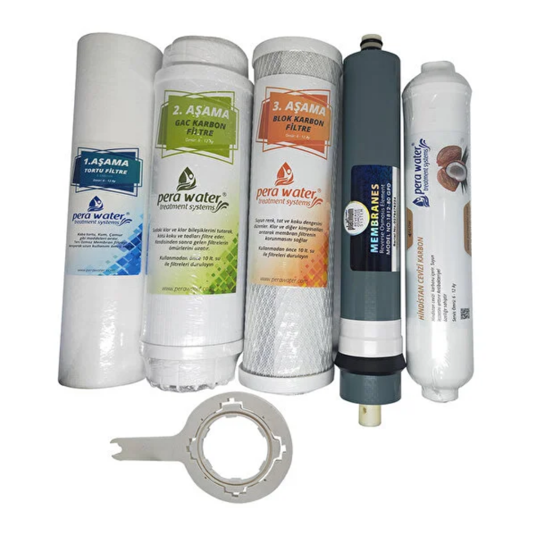 Pera Water Açık Kasa Su Arıtma Cihazlarına Uygun Platinium 80 Gpd Mebranlı 5’li Filtre Seti Açma Anahtarı Hediyeli