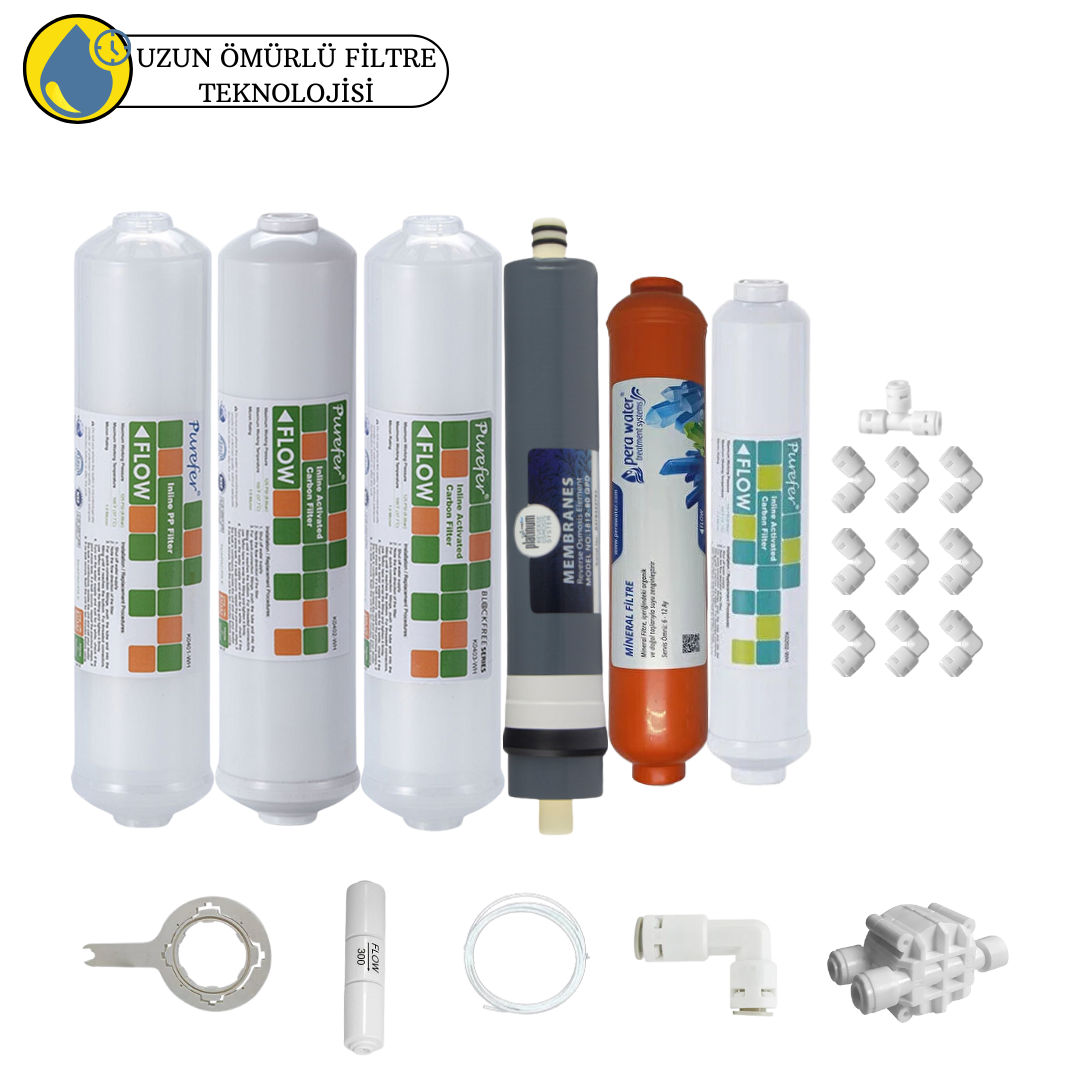 Purefer kapalı Kasa Su Arıtma Cihazlarına Uygun Sertifikalı 6 li Platinium mebranlı mineralli set ve ekipmanları