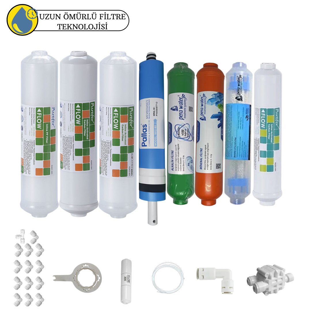Purefer kapalı Kasa Su Arıtma Cihazlarına Uygun Sertifikalı 8 li Pallas mebranlı mineral + alkalili + detox set ve ekipmanları
