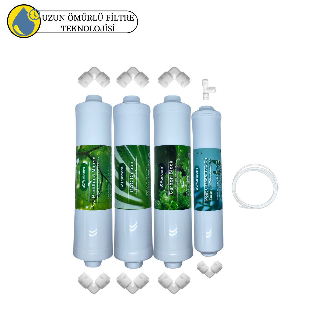 Puricom kapalı Kasa Su Arıtma Cihazlarına Uygun Sertifikalı 4 lü filtre seti