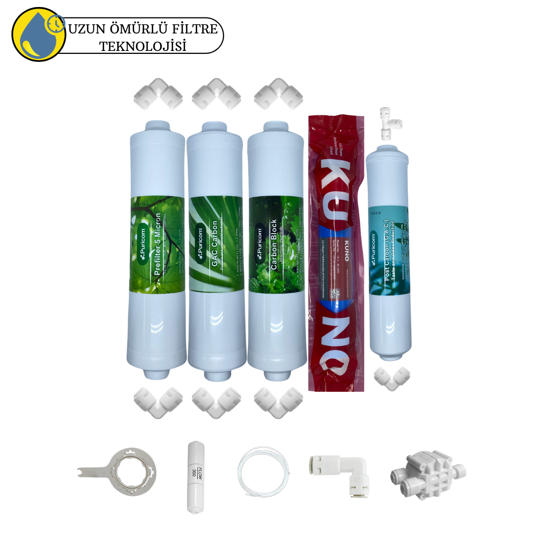Puricom kapalı Kasa Su Arıtma Cihazlarına Uygun Sertifikalı 5 li Orijinal Lg Kuno mebranlı 5 li set ve ekipmanları