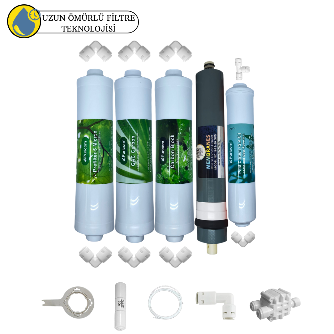 Puricom kapalı Kasa Su Arıtma Cihazlarına Uygun Sertifikalı 5 li Platinium mebranlı 5 li set ve ekipmanları