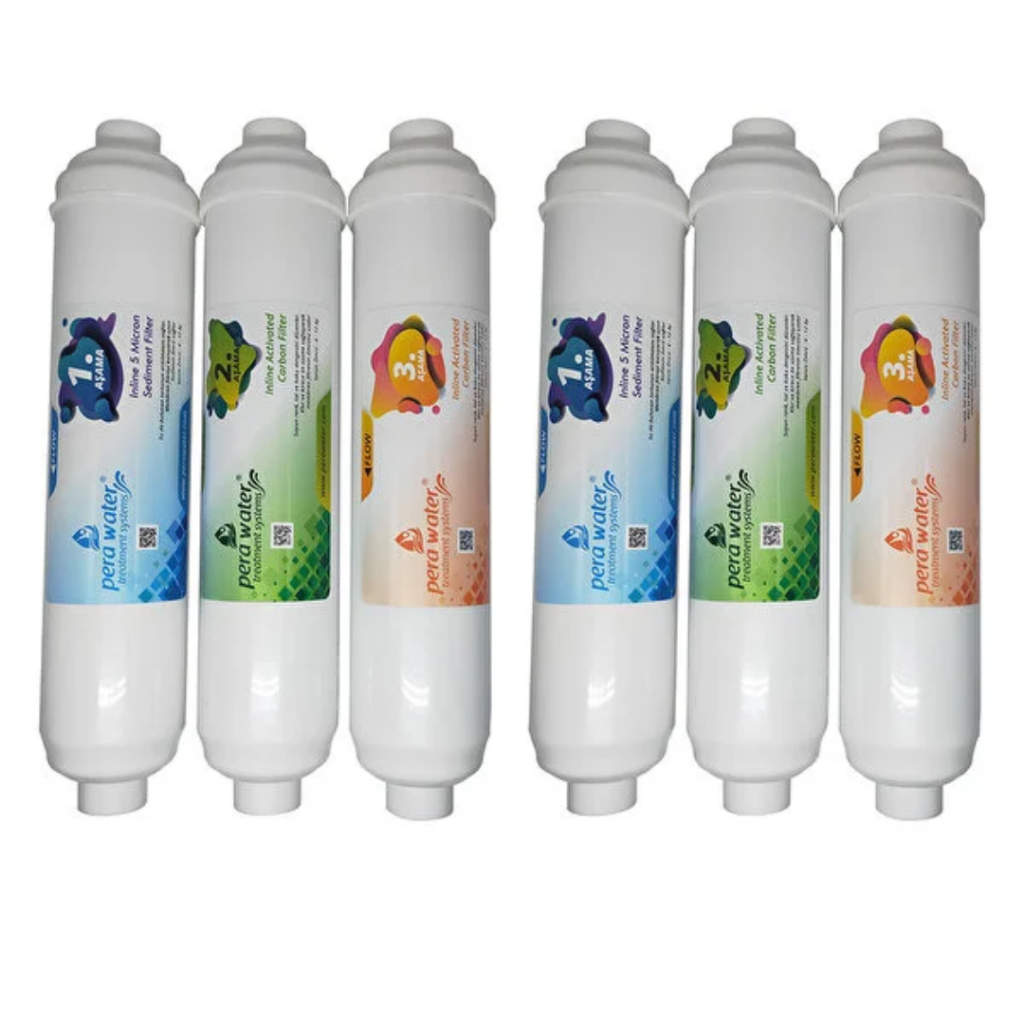 Pera Water Kapalı Kasa Su Arıtma Cihazlarına Uygun Mebransız İnline 6’lı Mineral + Alkali Filtre Seti Bağlantı Dirseği Hediyeli